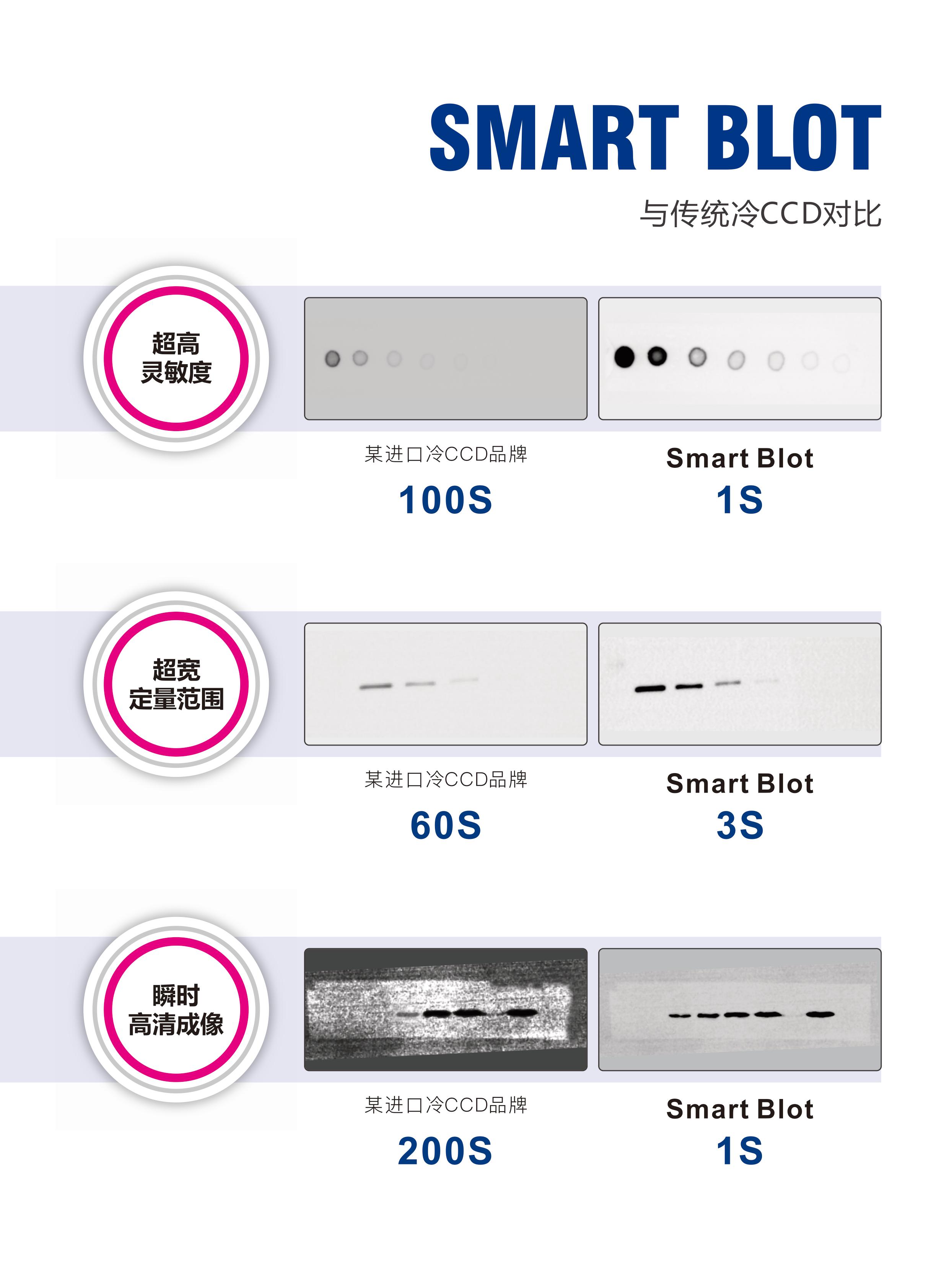 1. 瞬间高清成像:与需要长时间曝光的传统设备相比,Smart Blot仅需1秒即可完成高清成像,大大缩短了实验周期,提高了实验效率。