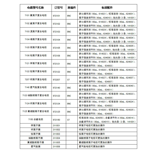 产 品 型 号 余氯电极